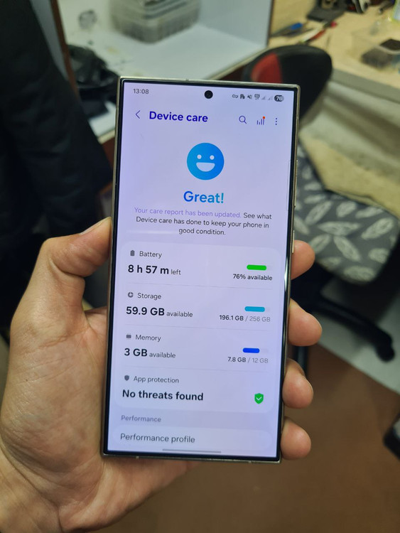 یک دستگاه گلگسی اس24 اولترا رنگ بنفش کارکرده . بدون بازشدگی . بدون تعمیر . بدنه در حد نو . ال سی دی در حد نو بدون خط و خش . به شرط ضد اب . با تمام لوازم و ریجستری .