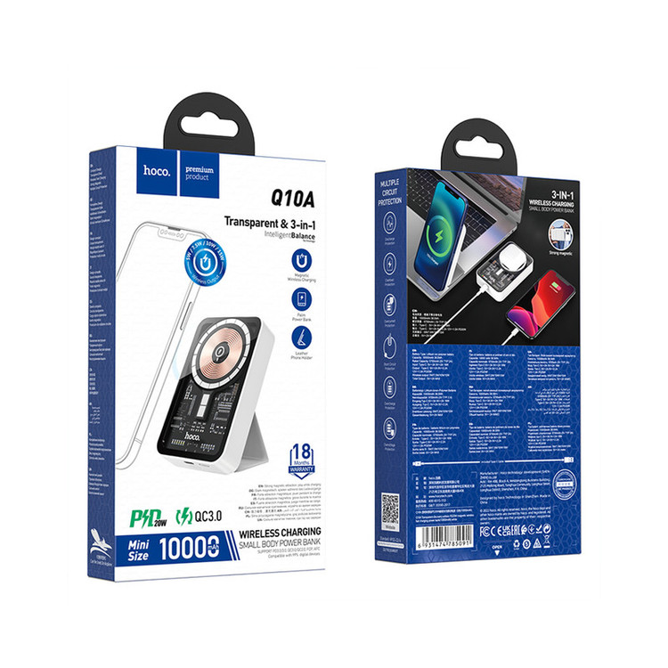 پاوربانک هوکو مدل Q10A WIRELESS PD+QC3.0 20W ظرفیت 10000 میلی آمپر ساعت