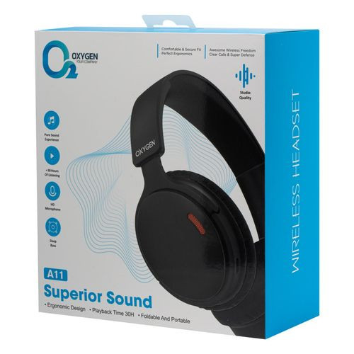 هدست بلوتوثی اکسیژن مدل OXYGEN A11 از جنس پلاستیک نرم و با کیفیت ، اسکلت داخلی فلزی با قابلیت تاشو و تغییر ارتفاع سر می باشد. قابلیت اتصال از طریق بلوتوث ، AUX و پورت مموری میکرو را دارد و قابیت دیگر پخش رادیو می باشد. هدست بلوتوثی اکسیژن مدل OXYGEN A11 یک قابلیت عالی دارد که اگر باتری هدست تمام شد، شما می توانید از طریق کابل AUX به پخش کننده متصل شوید و صوت مورد نظر خود را گوش کنید. باتری دستگاه 350 میلی آمپر بر ساعت است که شارژ واقعا خوبی بخاطر تکنولوژی برد هوشمند هدست اکسیژن نگه می دارد. هدست بلوتوثی اکسیژن مدل OXYGEN A11 بیس خوبی برای موسیقی و گیم دارد.