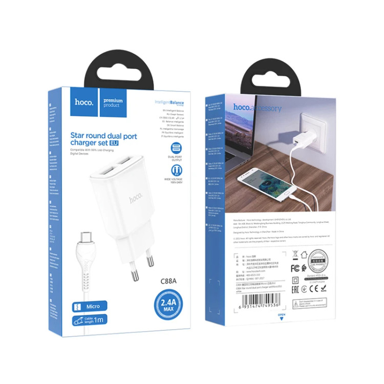 شارژر دیواری هوکو مدل C88A به همراه کابل MICROUSB